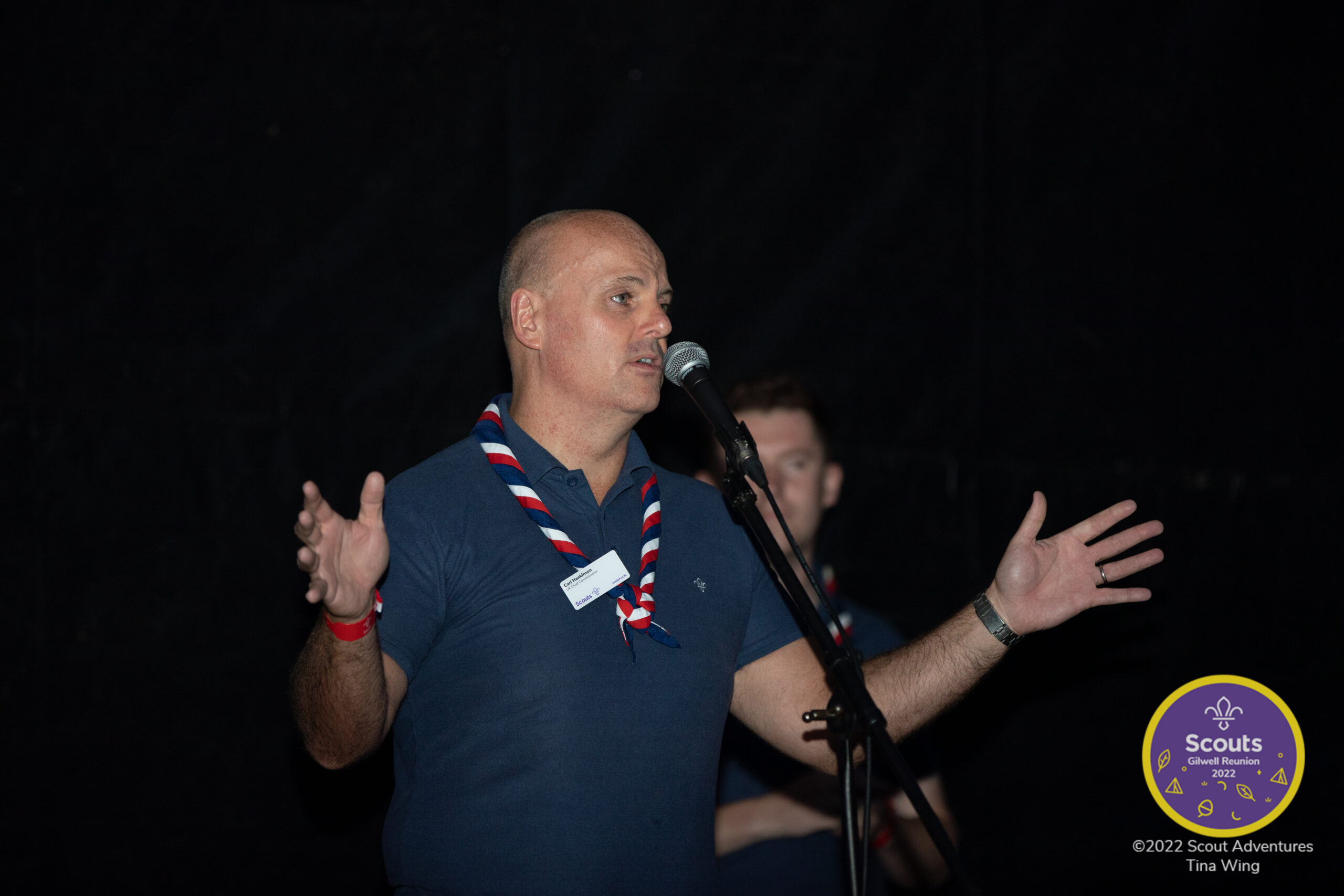 It was to thunderous applause that Matt Hyde officially welcomed everyone to Reunion 2022 tonight, expressing how much of an honour it was for Reunion to be back at Gilwell once more. Welcoming participants both new and old, his speech quickly fell to the wayside in favour of finding out just who had attended Reunion the most.
